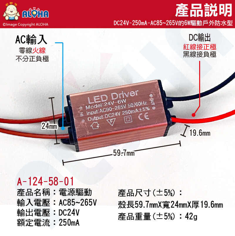阿囉哈LED總匯_A-124-58-01_DC24V-250mA-AC85~265V的6W驅動戶外防水型