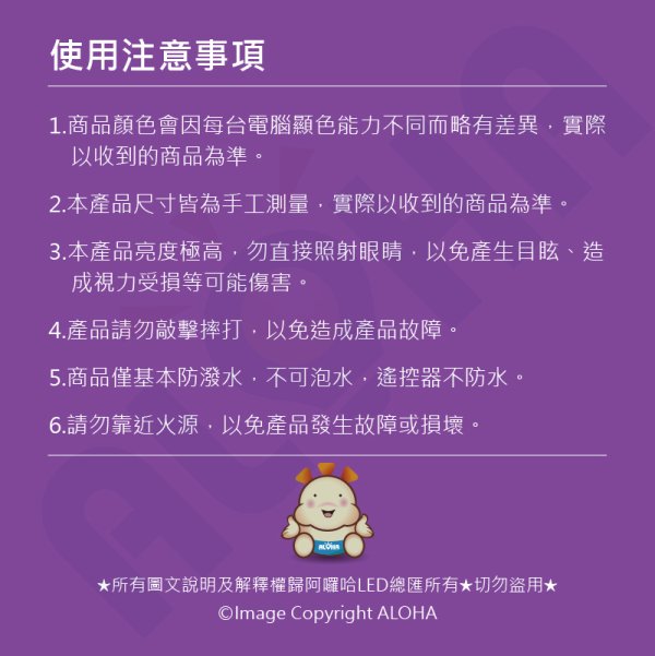 5.商品僅基本防潑水,不可泡水,控制器不防水。