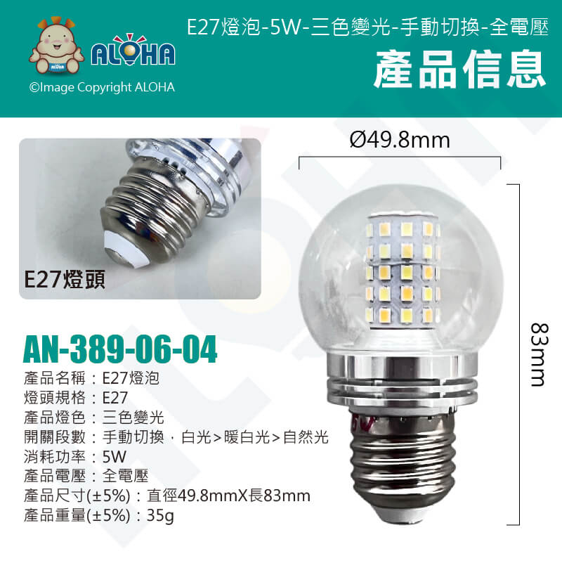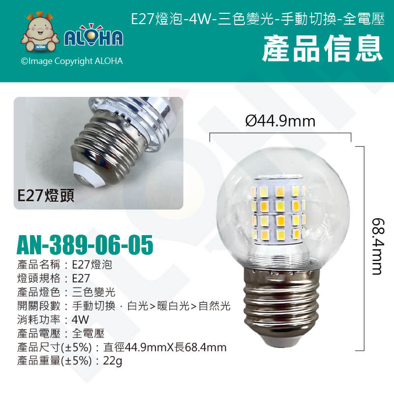 阿囉哈LED總匯_AN-389-06(A)_E27燈泡-4W/5W-三色變光-手動切換-白光+暖白光+自然光-全電壓