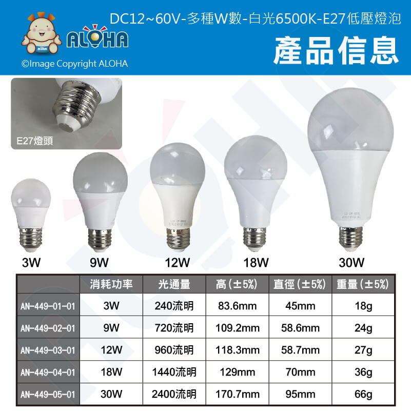 阿囉哈LED總匯_AN-449(A)_DC12~60V-多種W數-白光6500K-E27低壓燈泡