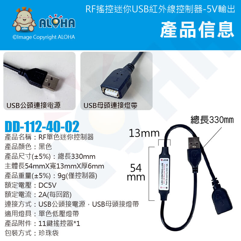阿囉哈LED總匯_DD-112-40-02_RF搖控迷你USB紅外線控制器-5V輸出-共正-2A每迴路