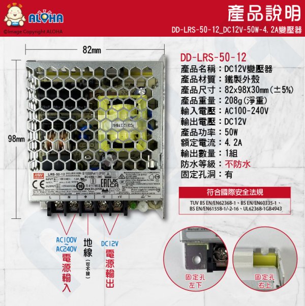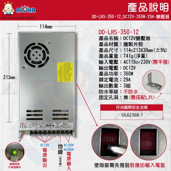 阿囉哈LED_DD-LRS系列_DC12V變壓器_50W/100W/150W/350W-工程用家用-明緯變壓器-全電壓