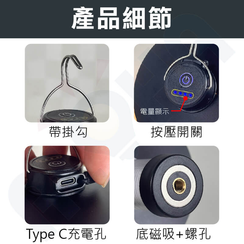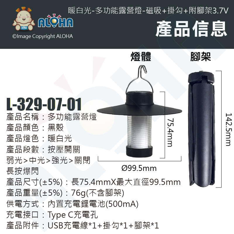 阿囉哈LED總匯_L-329-07-01_暖白光-多功能露營燈-磁吸+掛勾+附腳架3.7V-500mA-使103040 電量顯示