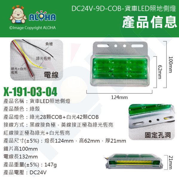 阿囉哈LED總匯_X-191-03-01、02、04、06_四種顏色-DC24V-9D-COB28+42燈-防水高亮-貨車LED照地側燈
