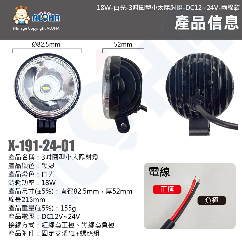 阿囉哈LED總匯_X-191-24-01_18W-白光-3吋圓型小太陽射燈-DC12~24V-兩線款