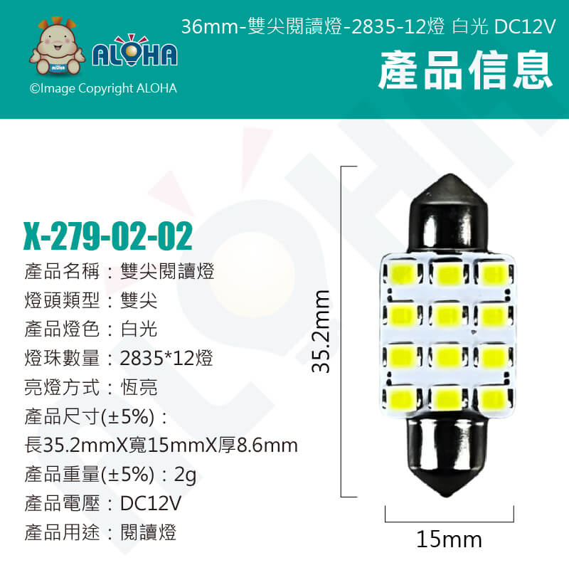 阿囉哈LED總匯_X-279-02-02_36mm-雙尖閱讀燈-2835-12燈 白光 DC12V