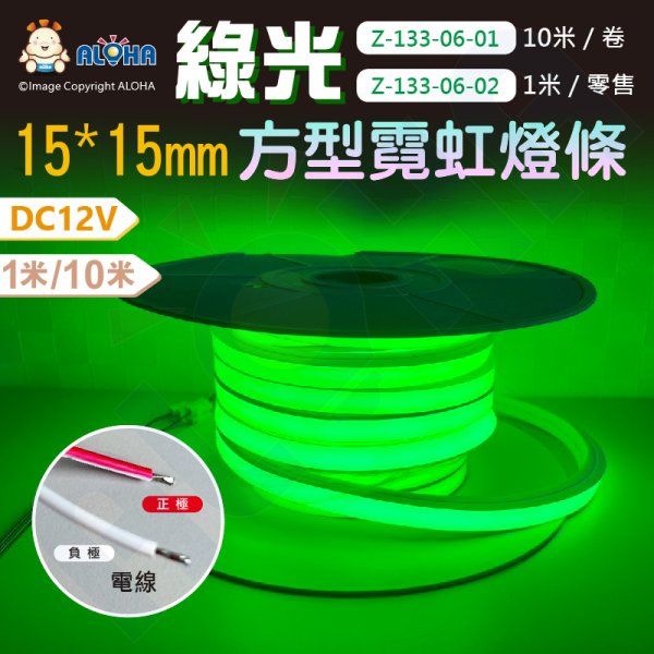 阿囉哈LED總匯_Z-133-06(A)_綠光-15×15mm-方型霓虹燈條-10米/卷/DC12V/2835*120燈
