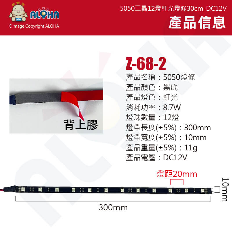阿囉哈LED總匯_Z-68-2_5050三晶12燈紅光燈條30cm-DC12V