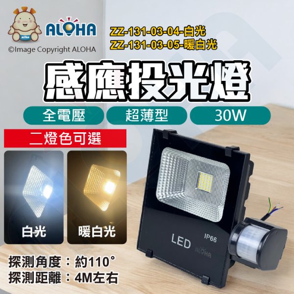 阿囉哈LED總匯_ZZ-131-03(A)_30W-白光/暖白光-加感應器投光燈-超薄型-黑殼-2400流明