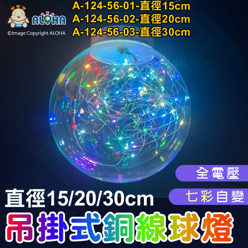 阿囉哈LED總匯_A-124-56(A)_直徑15/20/30cm可選-吊掛式-七彩銅線球燈-單顆賣 配1個電源(AC110V~AC220V)
